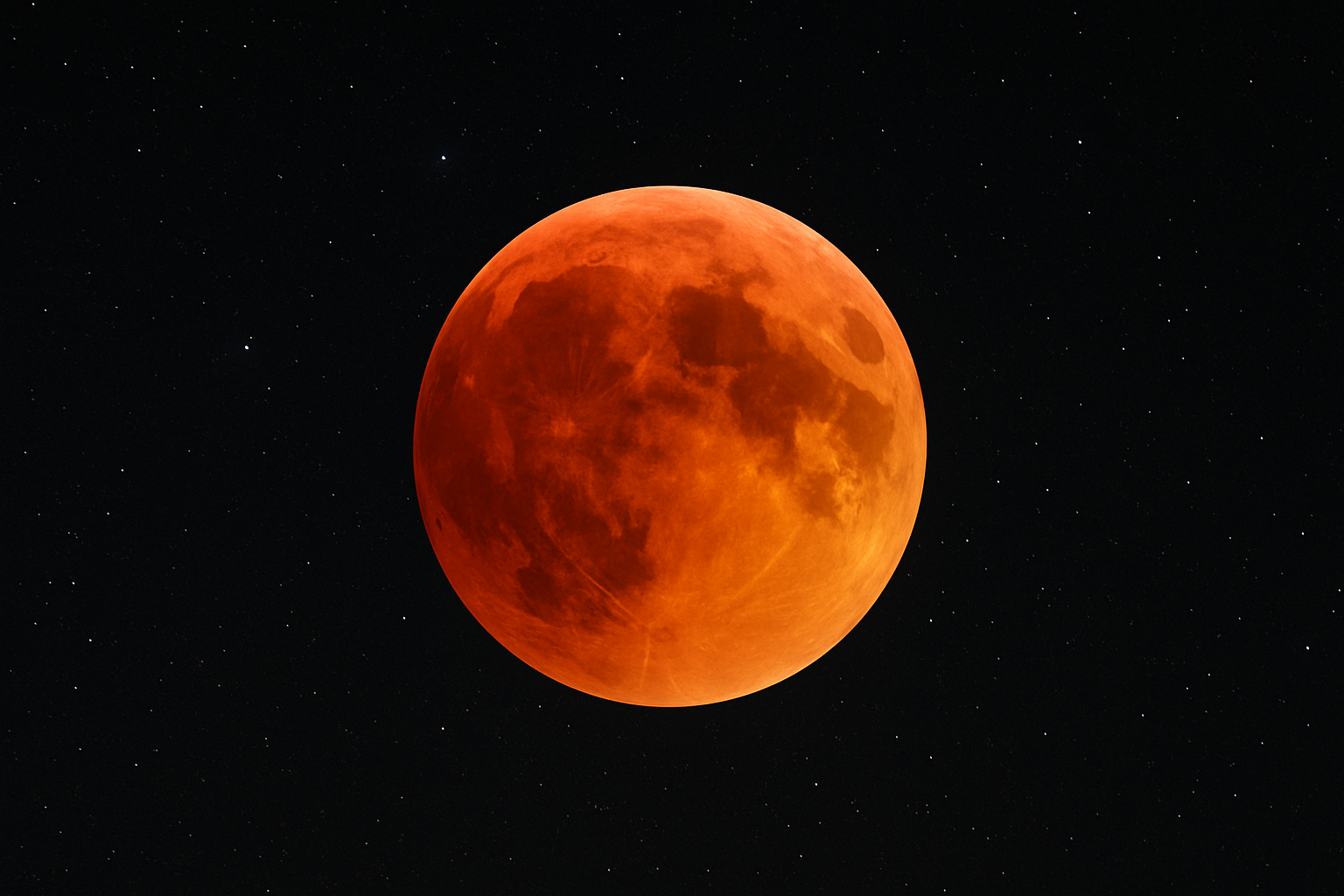 A total eclipse happens when the Earth comes directly between the Sun and the Moon. Earth’s shadow then falls on the Moon, making it appear darker or even glowing red, which people call a Blood Moon.