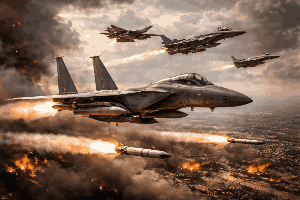 In reply to the attack of US and Israel, Iran orders to fight back and Iran strikes Israel with drones, missiles and proxy groups and destroy the military bases of US which are in the Saudi Arab, Kuwait, Qatar resulting in total destruction of connection of US.