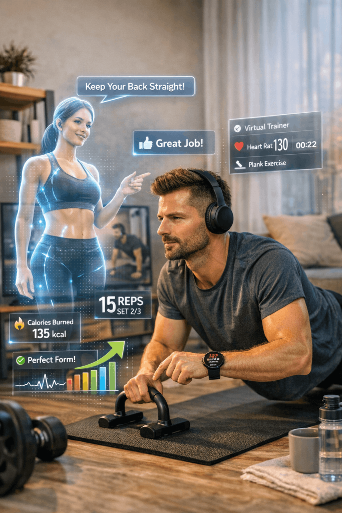 AI- powered virtual trainers are those that, correct your form in real time, Motivate with adaptive feedback and track all the necessary precautions for health and fitness.