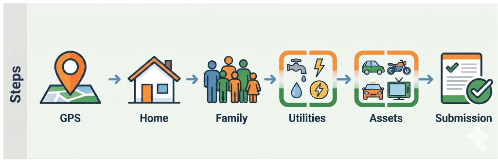 5. What information will I need to fill out during self-enumeration? The self-enumeration form covers 33 questions spread across six sections. These include details about your household’s location, the construction materials used for your floor, walls, and roof, the number of people living in the household, available facilities such as drinking water and electricity, assets owned by the household, and general information about the head of the household. The entire process is expected to take between 15 and 20 minutes.