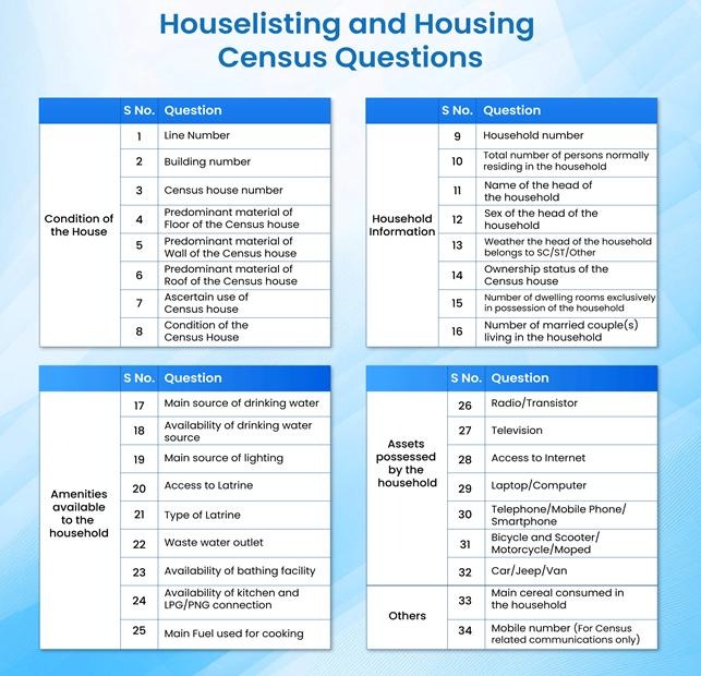 - Phase 1 is the Houselisting and Housing Census 2027 (HLO). It is scheduled between April and September 2026. The State/UT governments can conduct the census within a period of 30 days. People will also get the option to self-enumerate 15 days before the House-to-House HLO work begins. The questions of the HLO phase are mentioned in the picture below.